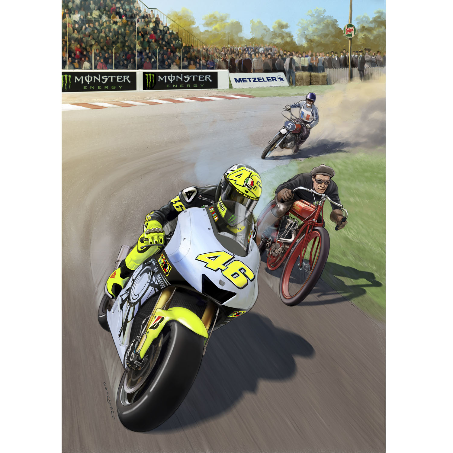 Soy Daniel González. Me autodefino como “obrero del lápiz” (emulando a un querido colega). En el desafío de cada trabajo, en cada nueva técnica está el disfrute, el reencuentro con el placer primario, aquél que me llevó a dibujar por primera vez, a plasmar lo que veía y sentía. Dejar plasmados mis sentimientos con respecto a las vivencias. Aunque hace ya más de 40 años se convirtió en mi oficio por elección (algo de lo que siempre tuve certeza). Como dijo Sartre: “Somos lo que hacemos con lo que hicieron de nosotros”. En esa búsqueda de desafíos incursioné en el diseño gráfico, historietas, ilustración publicitaria, storyboards para cine y publicidad, la plástica, etc. Como muchos oficios, nunca se acaba de aprender y aún sigo en esa tarea.