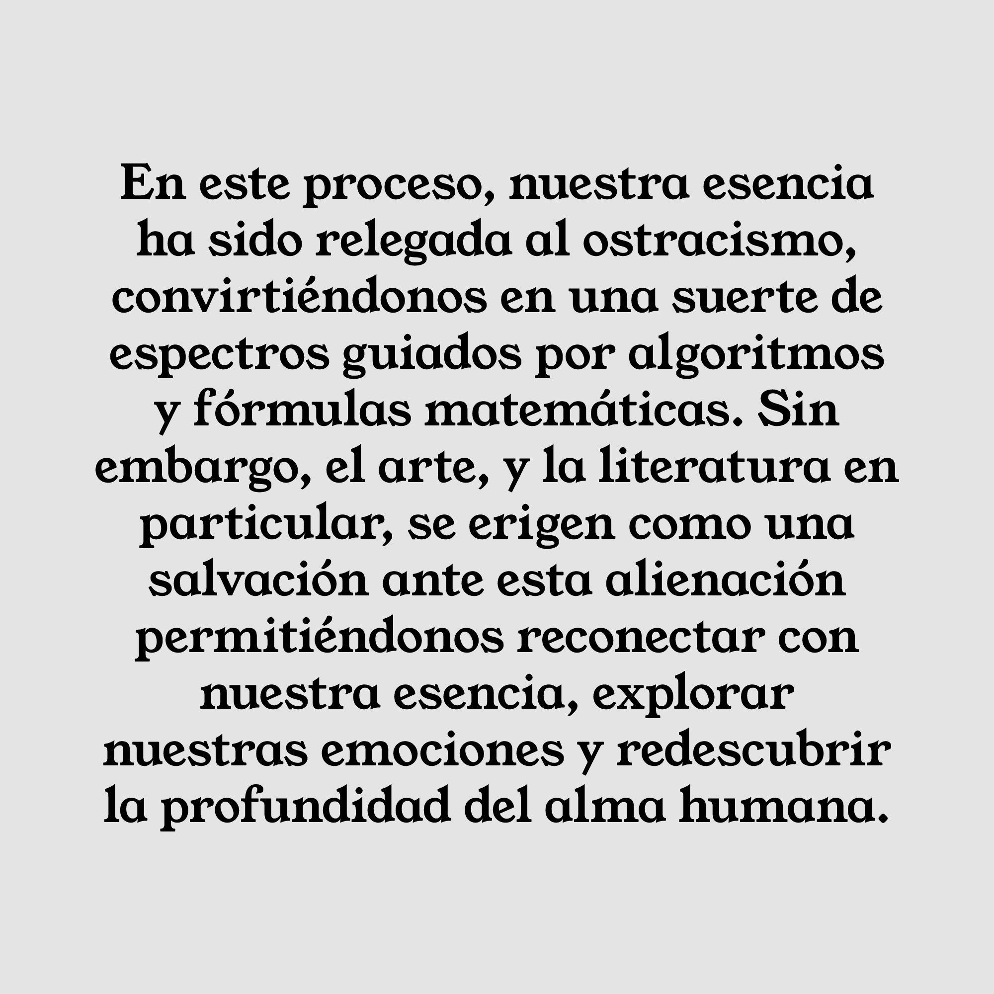 La literatura, en virtud de su capacidad para transportarnos, nos permite explorar un sinfín de realidades alternativas. En oposición a la naturaleza única y singular de nuestra existencia, limitada a una sola experiencia personal, la ficción literaria nos libera de esa restricción dando cuerpo a posibles insospechados, sacando a la luz la multiplicidad y diversidad de las experiencias humanas. El arte literario, y en particular la novela a través de sus personajes, abre de este modo una brecha en los muros de nuestra finitud, concediéndonos la posibilidad de vislumbrar, aunque sea un instante, un laberinto de sendas no recorridas. Tal y como Kundera lo confesaba: "Los personajes de mi novela son mis propias posibilidades que no se realizaron. Cada uno de ellos ha atravesado una frontera por cuyas proximidades no hice más que circundar"